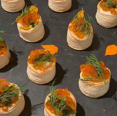 Smoked Salmon Blini, Creme Fraiche, Dill, Roe